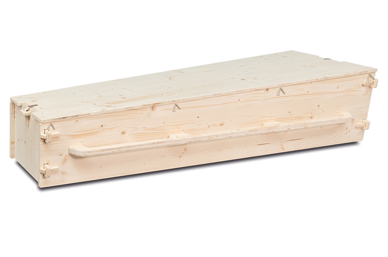 De bekleding van deze kist is gemaakt van strak ongebleekt katoen. Dit is een natuurlijk materiaal dat biologisch afbreekbaar is.